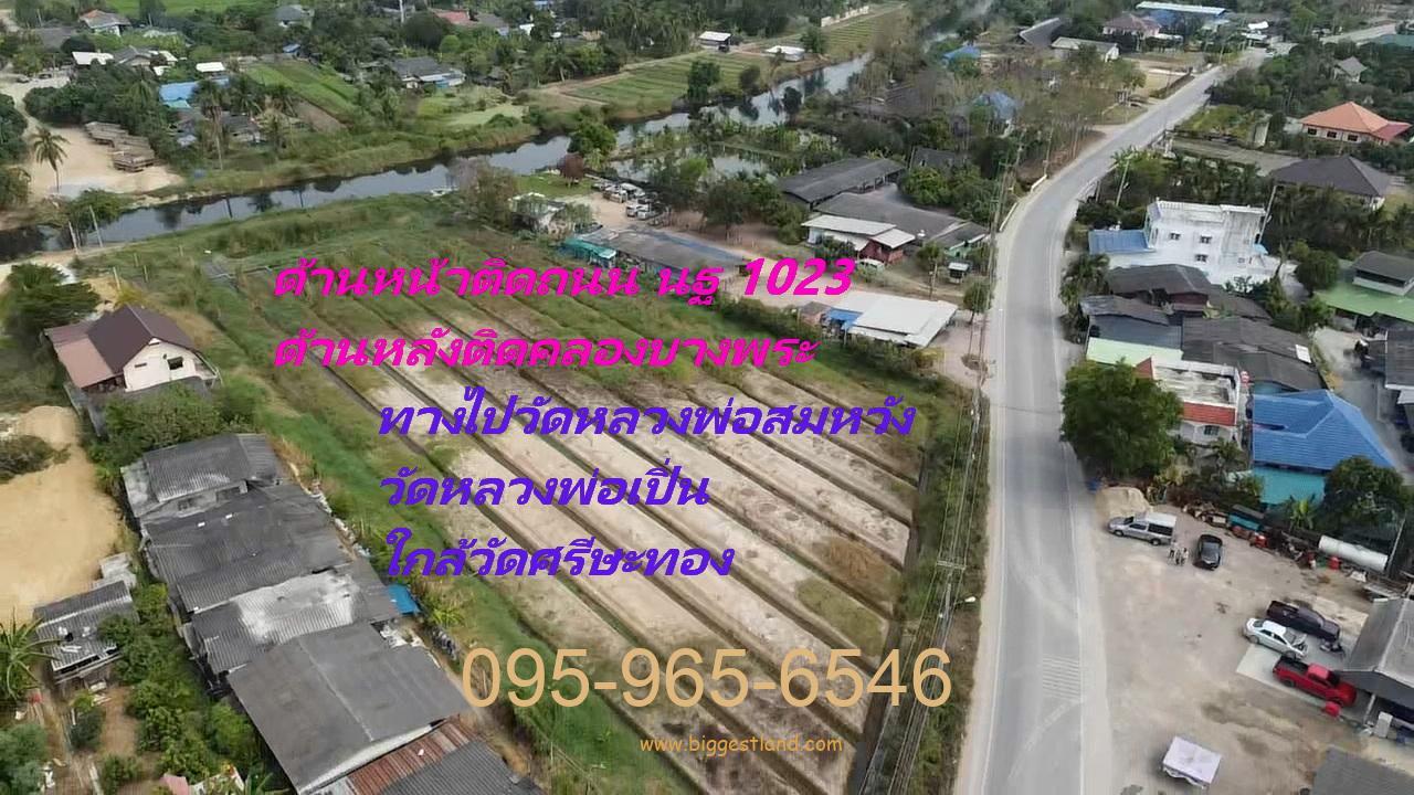 –ด้านหน้าติดถนนใหญ่ทางหลวงชนบท นฐ1023 ด้านหลังติดคลองบางพระ