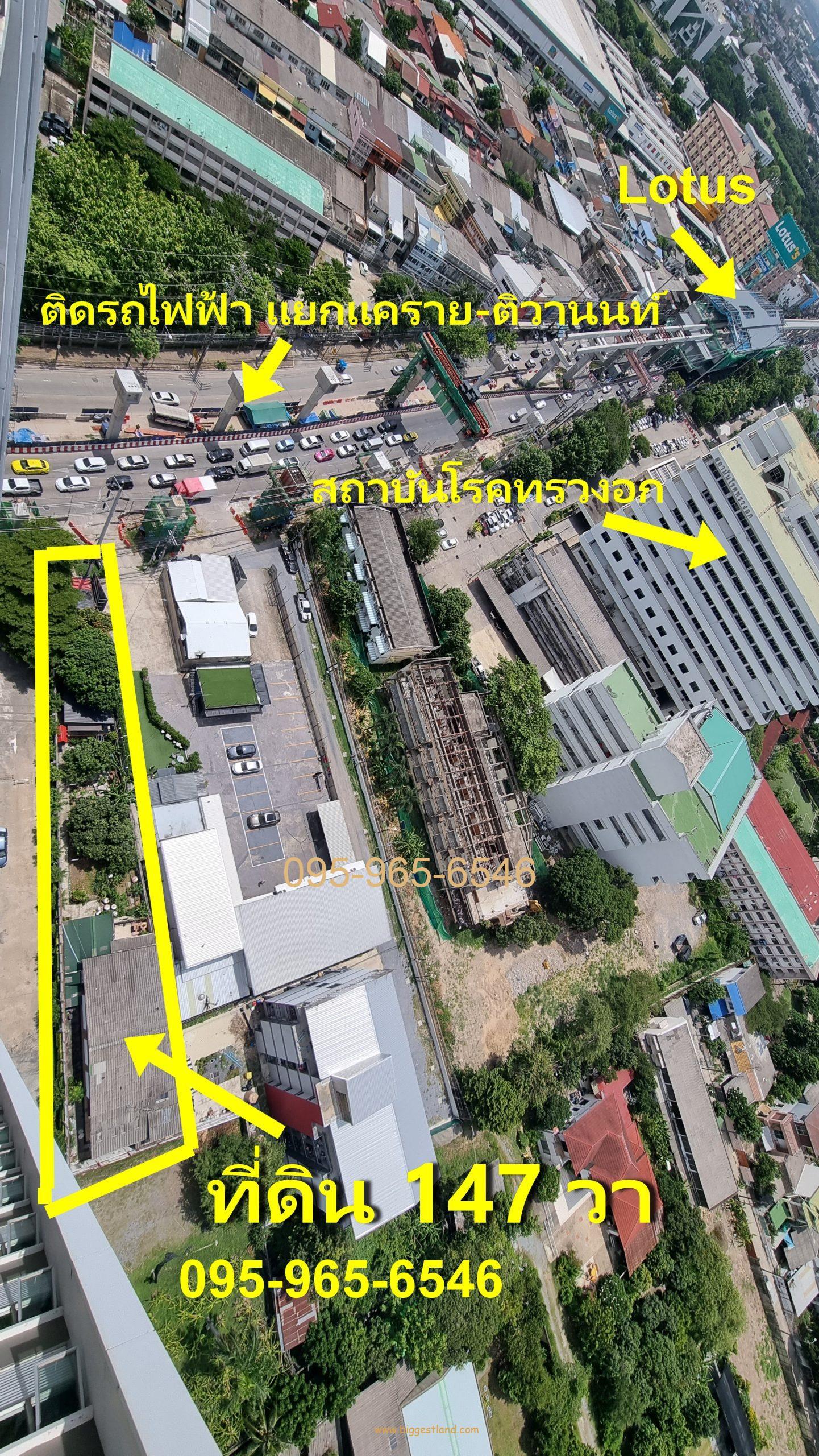 ขายที่ดินติดถนนใหญ่ สี่แยกแคราย ติดรถไฟฟ้า 147ตรว ข้าง รพ.ทรวงอกและคอนโดParkland