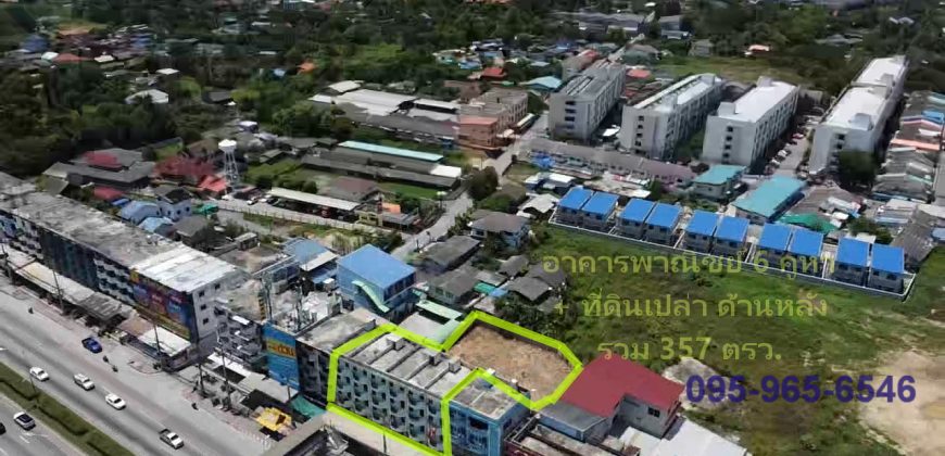 -อาคารพาณิชย์ติดถนนใหญ่ 6คูหา 4ชั้นครึ่ง + ที่ดินเปล่าถมแล้วด้านหลัง รวมทั้งหมด 357 ตรว.
